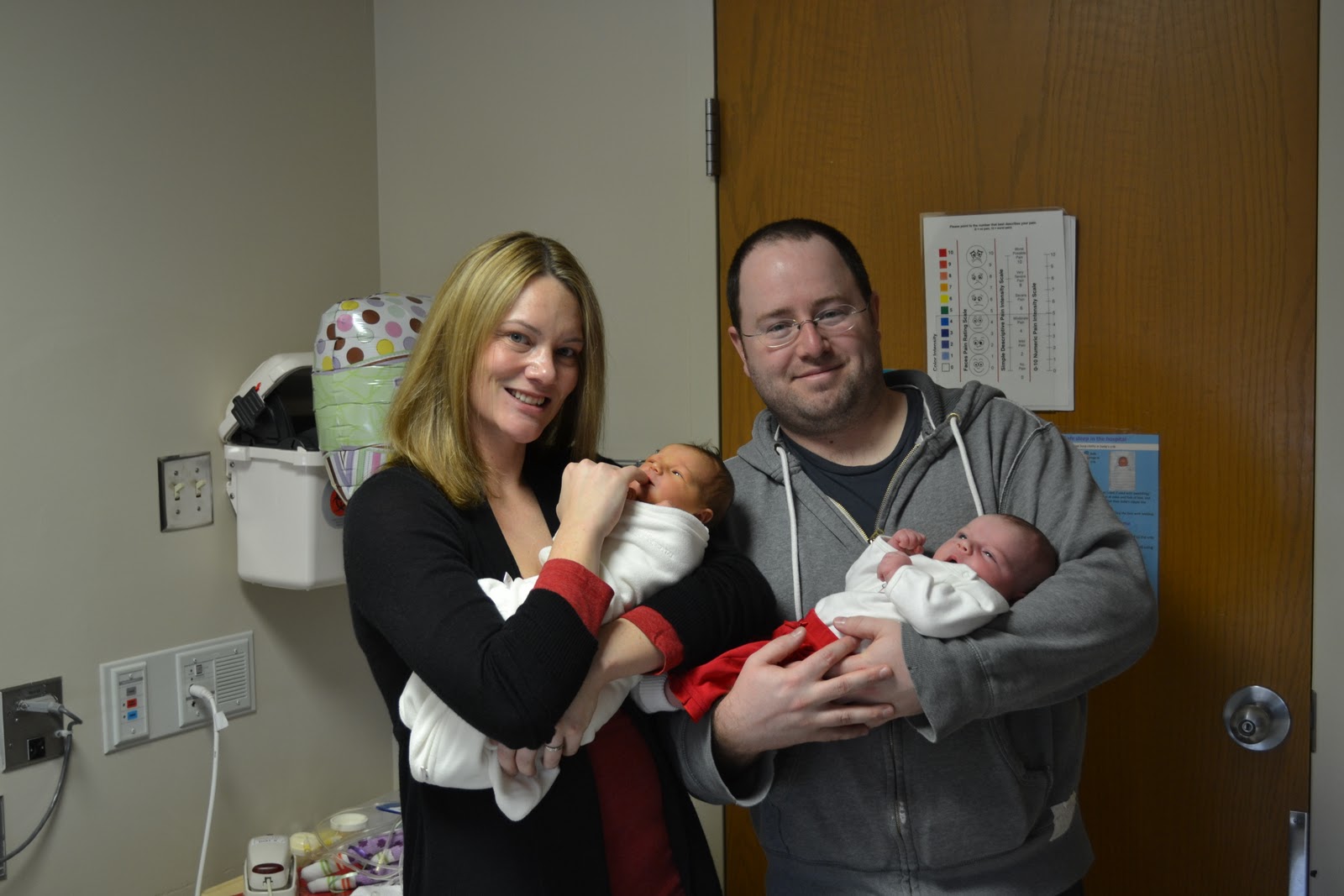 Tuesday night, February 15th, at 41 weeks 2 days pregnant, I was admitted into the hospital for the beginning of an induction. My cervix was not dilated very far, so they gave me some drugs to help that. They usually give 3 doses of that. After 2 doses, I was dilated to 4 and was starting to have contractions. So they didn’t give me the third dose and broke my water. This was somewhere around 3:45 that morning. I had a lot more contractions and I asked for my epidural. That finally came after some painful contractions. My epidural didn’t end up working. I then got horrible contraction pain and the most painful hip pain ever. Chuck had me try to breathe through them, but could tell I was bordering panic mode and couldn’t handle these much longer.
